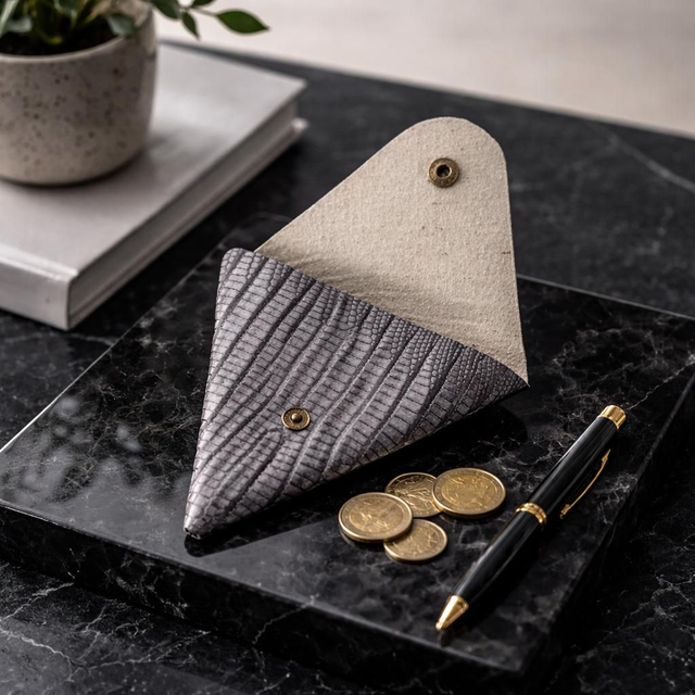 ✨️ PROMO ✨️ Porte-monnaie en cuir triangle Gris effet peau crocodile.