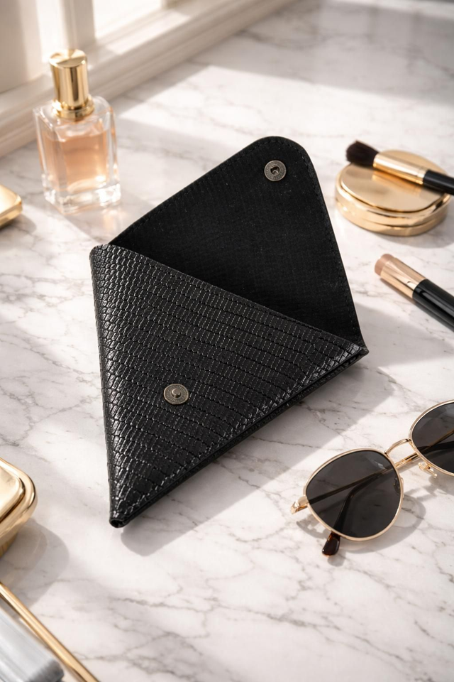 ✨️ PROMO ✨️ Porte-monnaie en cuir triangle Noir effet peau de serpent.