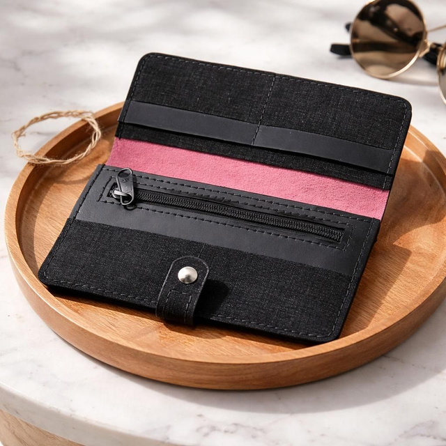 ✨️ PROMO ✨️ Portefeuille / Porte-chéquier en cuir Noir et rose