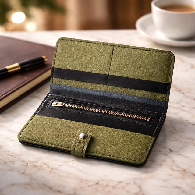 ✨️ PROMO ✨️ Portefeuille /Porte-chéquier en cuir - Noir et vert pailleté